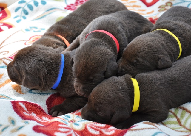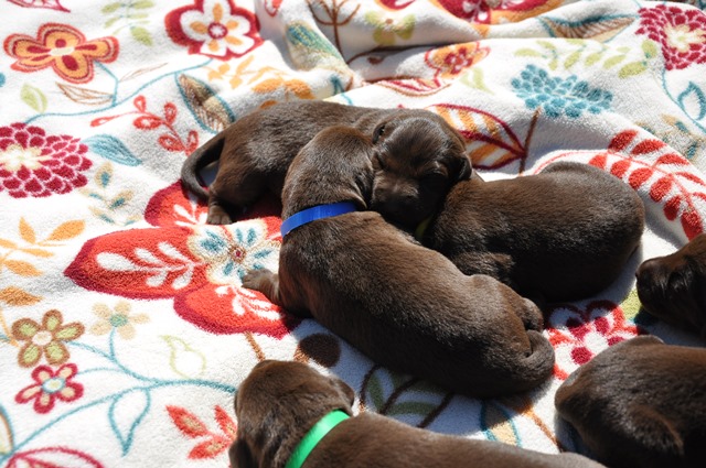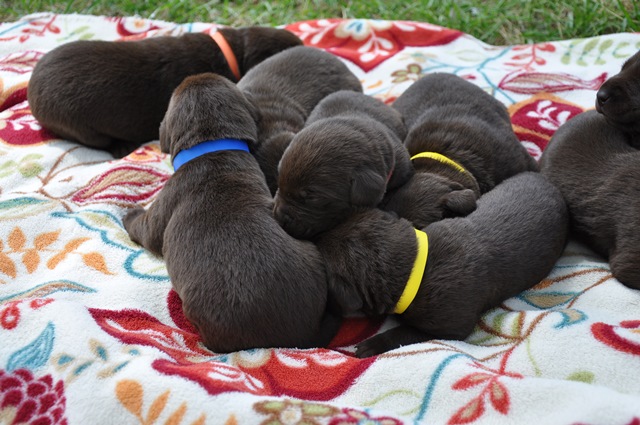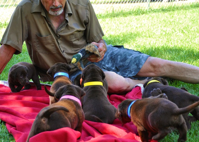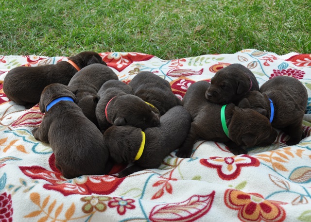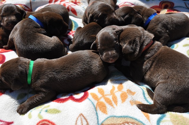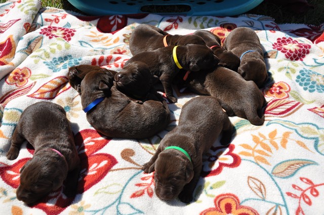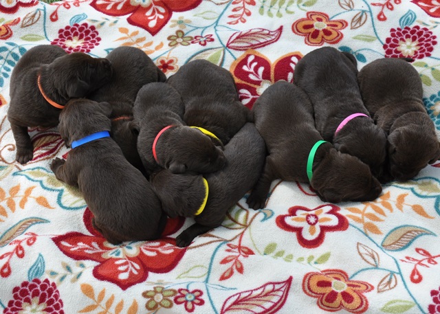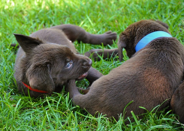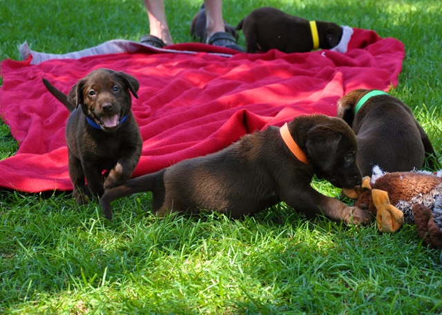 retrieving toys. This is the perfect age for these chocolate babies to bond with
