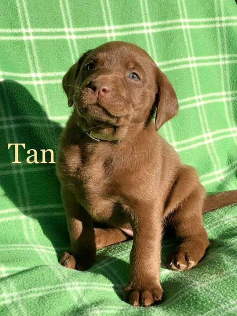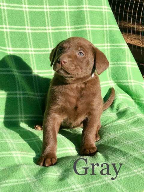 Champion bloodline all chocolate lab pups for sale! 4 females and 3 males available. Two weeks old and starting to open their eyes and walk around already. Pups come with shots, microchip, AKC & UKC registration, and 26 month guaranteed health clearances.
