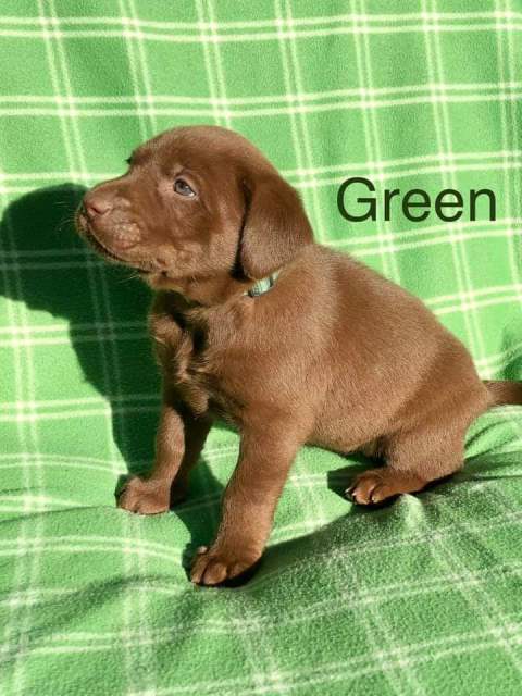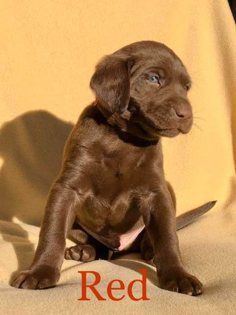 He is a beautiful dark chocolate dog with loads of drive and desire to please.
